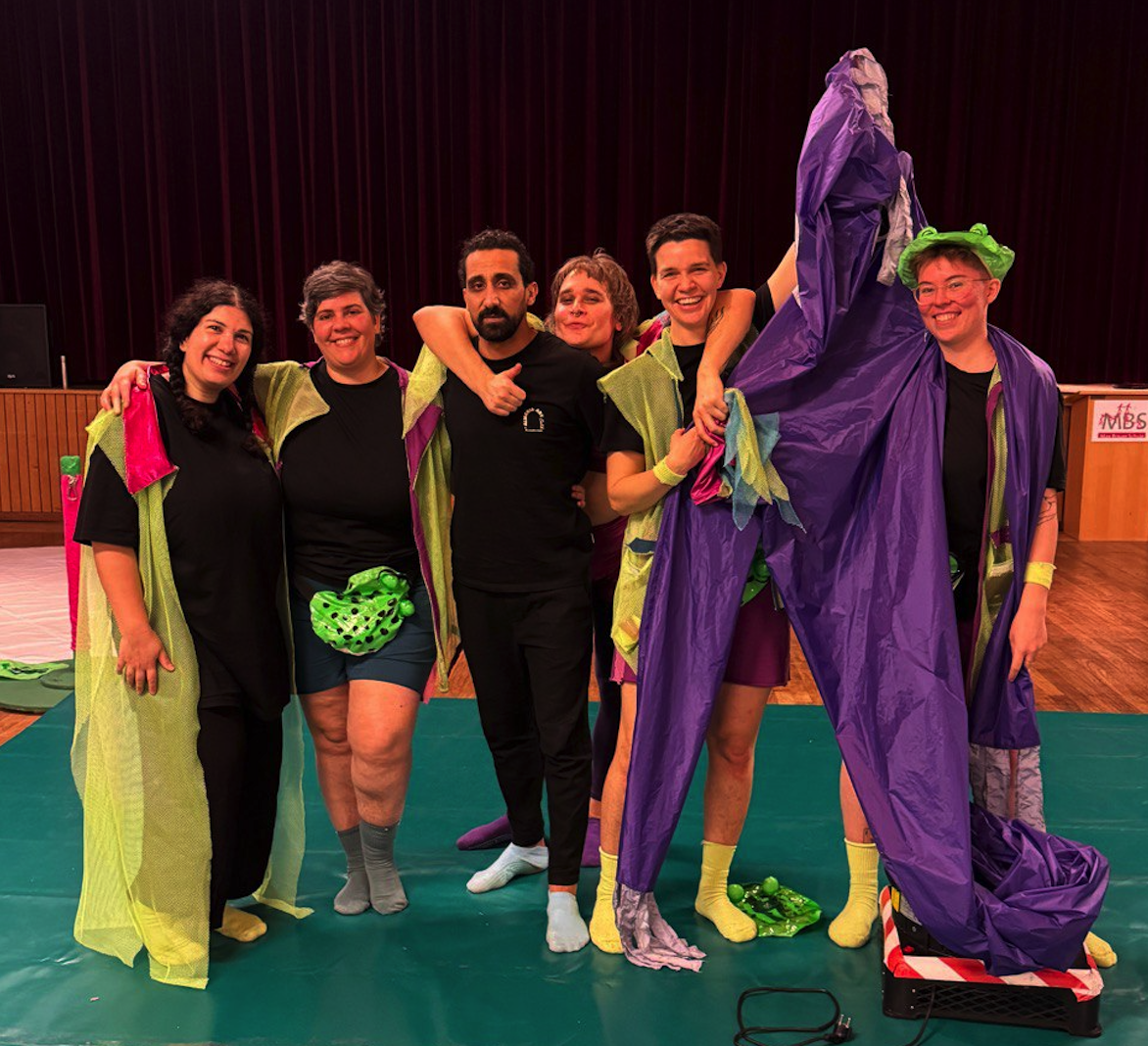 RAUFKREISEN – ein Gastspiel des Estupefacta Kollektivs, dass als partizipative Performance an drei Hamburger Grundschulen stattfand. Das vom ZKBV geförderte Gastspiel war ein Blitz- Angebot, das sich an Schüler:innen aller Grundschulklassen richtete. Die Performance förderte das Vertrauen zwischen allen Beteiligten und bot einen Raum, der im Konsens mit dem jungen Publikum verhandelt wurde. RAUFKREISEN findet in einem begleitenden und forschenden Kontext statt und behandelt das Thema Kämpfen als Erfahrung von Stärke und Schwäche, Grenzen und Grenzüberschreitung sowie Konsens und Rückzug. Gemeinsam mit dem jungen Publikum haben sie bestimmt, wie sie raufen möchten.